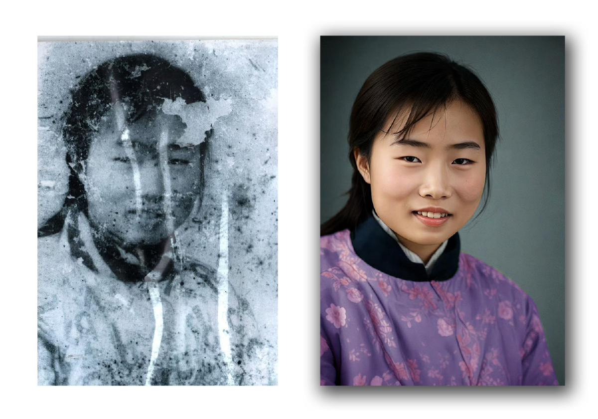 七十年代,破损严重美女老照片翻新 ,修复,着色。